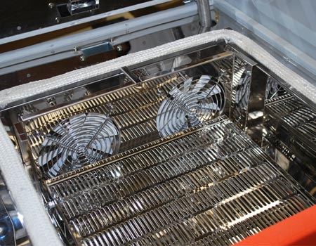 - T200N+整機采用的臺式回流焊機熱風循環和排風技術,有效提高回流焊機內溫度均勻度和熱風循環的導流效果。